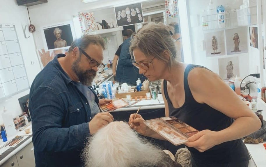Plus, I've been working with Richard Taylor’s Wētā Workshop for 15 plus years now, so I've got a shorthand with the team there. Jason Docherty was in charge of the prosthetic department, Stephen Crowe was our lead concept designer, Dan Cockersell was our lead sculptor, Mike Wallace and William Toft were our lead moldmakers. I worked closely with all of them when it came to the Pearl makeup, the Howard makeup, the makeup effects, the kills, et cetera..