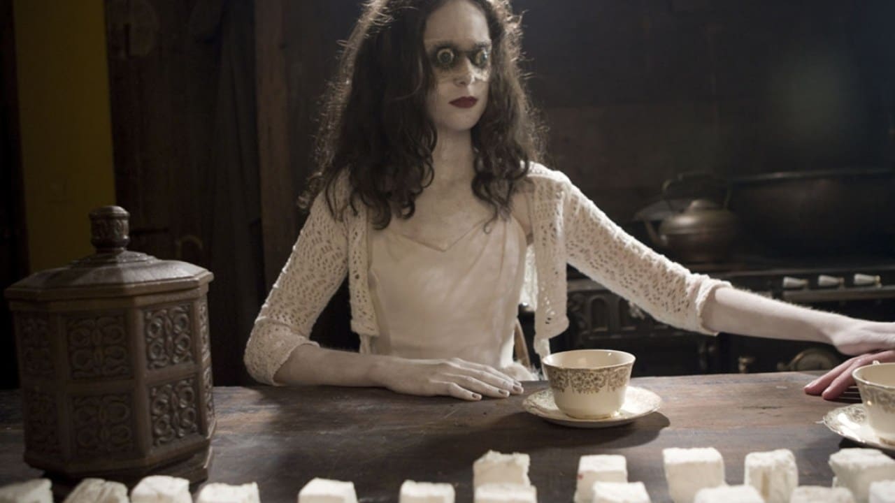 Things aren’t so much fun for Molly and Jessica during Plague Town’s second half, as the sisters are subjected to a series of attacks by the twisted youths. Although they’re playing younger, most of the actors enacting the malevolent kids are in their late teens or even a little older. One notable exception is 14-year-old Kate Aspinwall as signature villainess Rosemary; having no eyes of her own, she wears eerie doll’s orbs affixed to a bandage tied around her head. That part of her costume has made this something of a Method role for the first-time actress.