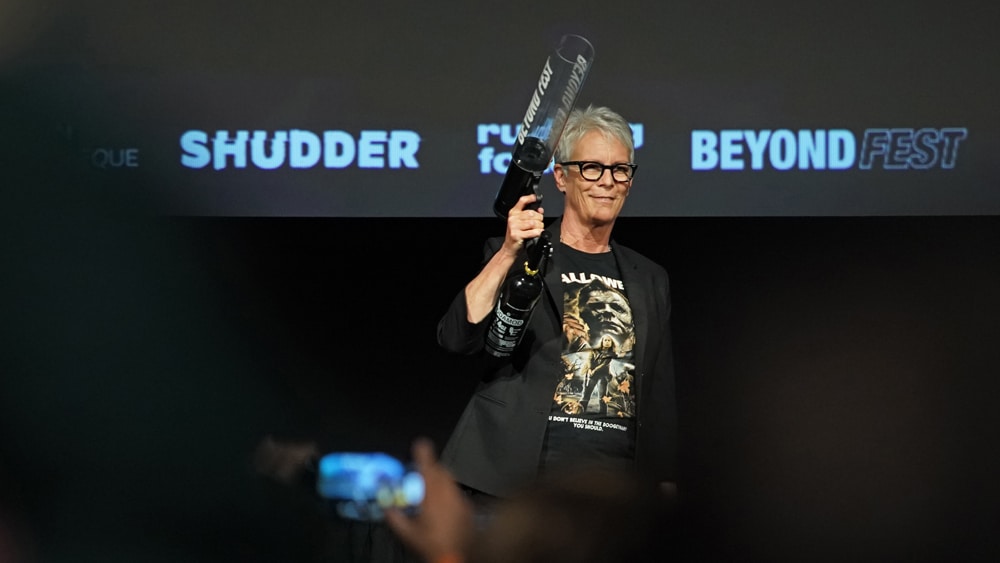 This sentiment, while shared by programmers and venues all over the world, contains a kernel of what makes Beyond Fest so special. At the West Coast premiere of Halloween Kills, Parkes – dressed in a rapidly deflating pumpkin costume – told the audience of a few hundred that there had been over 35,000 click requests for tickets to the screening. While the ticketing process is somewhat maddening to longtime Beyond Fest devotees, there is something radically egalitarian about it. They don't sell expensive tiered badges (or any badges for that matter), and scant few seats at any screening are set aside for VIPs. Rather, the tickets are thrown out to the rabble all at once and prized seating is awarded to those who line up outside the earliest.