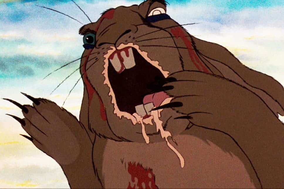 Something must have been in the air in England in the 1970s. While our transatlantic cousins were enjoying the squeaky-clean, family-friendly fare of Disney, us Brits were watching feral bunnies tear each other to shreds in the shockingly graphic “children's movie” Watership Down. Somehow landing a U rating at release (the British equivalent to a G), in 2012 the BBFC confirmed complaints from angry parents about the suitability of Watership Down “almost every year since its classification.” It's not just the animated violence that makes Watership Down so frightening – the film (based on a 1972 novel of the same name) deals with themes surrounding power and control, fascism, and confronting mortality. All scary stuff.