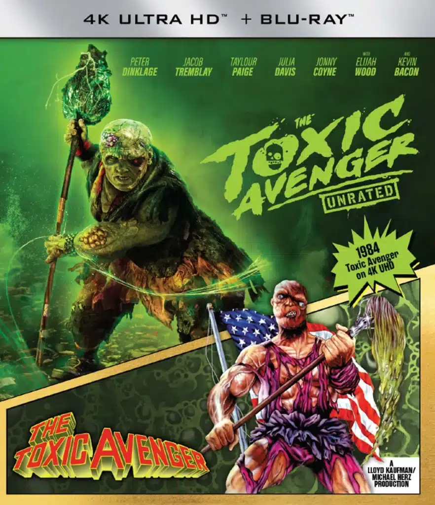 A DVD and Blu-ray release of The Toxic Avenger follows on October 28, as well as a 4K + Blu-ray Collector’s Edition release, which includes a limited edition lenticular O-Sleeve, a Steelbook – 4K + Blu-ray (Collector’s Edition), and an Amazon exclusive 4K UHD + Blu-ray Collector’s Edition, that also includes Lloyd Kaufman’s original The Toxic Avenger (1984) on 4K UHD.
