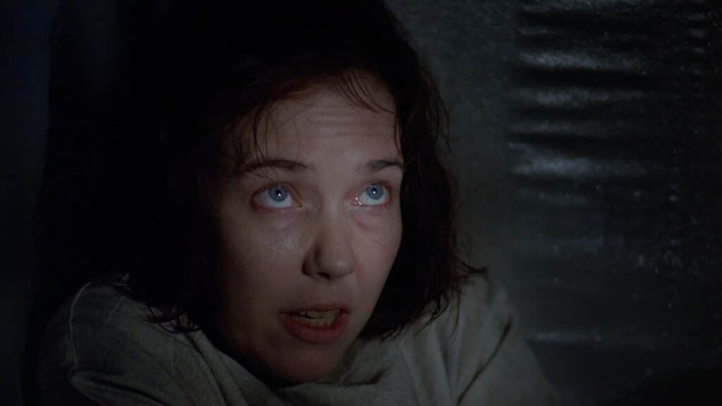 Donnie Pfaster is one of the most well-known villains in The X-Files canon. He is one of the few characters with no supernatural aspects; he is just a creepy dude. Originally written as a necrophiliac, the network insisted that was too much for broadcast television, so Pfaster was rewritten as an escalating “death fetishist,” someone who is obsessed with hair and fingernails. He quickly escalates when fired from his funeral cosmetology job and begins murdering to fulfill his desires. Scully, already suffering PTSD after returning from her own abduction, is deeply disturbed by this case, but pushes through. Pfaster becomes obsessed with Scully and kidnaps her, but Mulder saves her and Pfaster goes to jail. In “Orison,” Pfaster escapes prison, and goes looking for the one who got away: Dana Scully. She is just as disturbed by Pfaster, but she doesn’t need Mulder to save her this time.