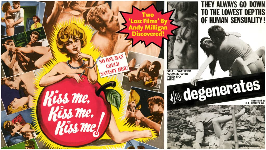 That’s TribecXploitation! The Andy Milligan Time Machine, Take a trip with Tribeca and Severin Films back to the heyday of Times Square grindhouse double bills, complete with vintage film trailers, to experience two long-lost Andy Milligan shockers: Kiss Me, Kiss Me, Kiss Me! (1968), an unhinged domestic drama from Hell, and The Degenerates (1967), a post-apocalyptic blast of sordid debauchery.