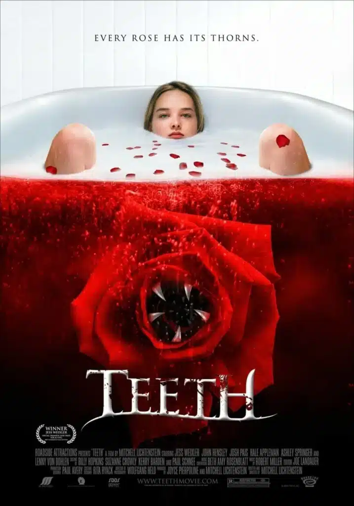 Probably the best-known of the “killer genitalia” sub-sub-genre (which I have just now created), Teeth is about a young virgin, Dawn, who discovers that she has “vagina dentata:” her vagina is lined with teeth. The vagina dentata is a common story in folklore, meant as a cautionary tale for men to prevent them from raping women. In fact, Dawn is able to have non-castration-causing sex when it is consensual. Unfortunately for Dawn, it usually isn’t. By the end of the film, she has learned how to control it and begins using sex as a weapon – literally.
